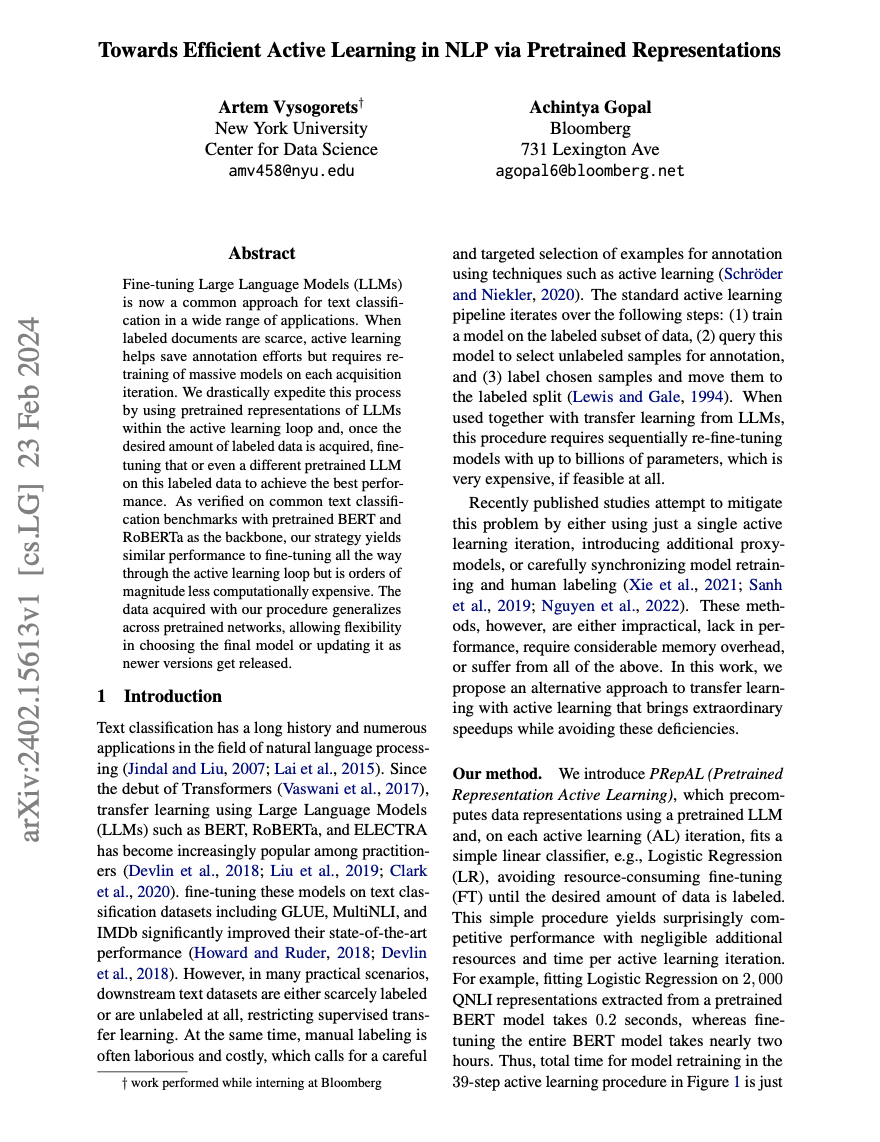 Vysogorets, A., Gopal, A. (2023). "Towards Efficient Active Learning in NLP via Pretrained Representations".