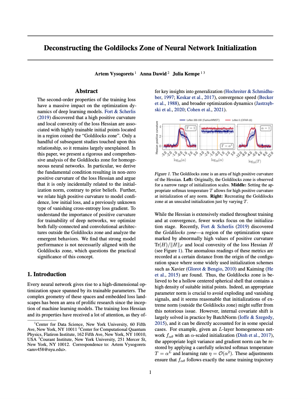 Vysogorets, A., Dawid A., Kempe, J. (2024). "Deconstructing the Goldilocks Zone of Neural Network Initialization".