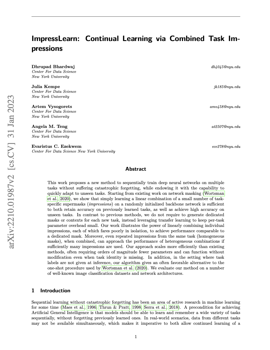 "ImpressLearn: Continual Learning via Combined Task Impressions".