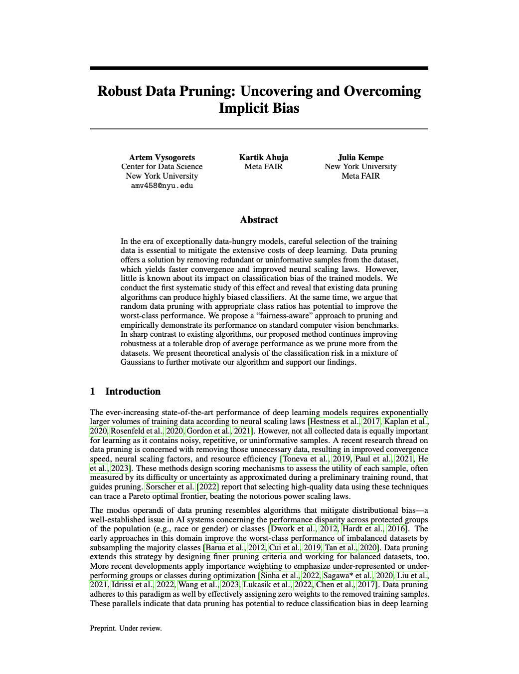 Vysogorets, A., Ahuja, K., Kempe, J. (2024). "DRoP: Distributionally Robust Data Pruning".
